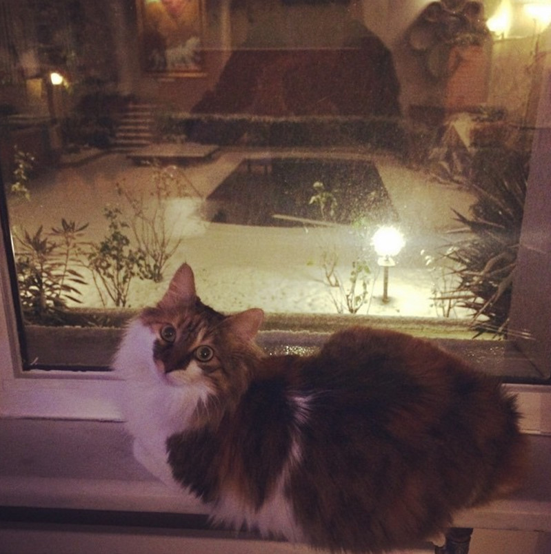 Zăpada este un motiv de bucurie la Istanbul. Mai ales dacă o poți admira dintr-o curte interioară.