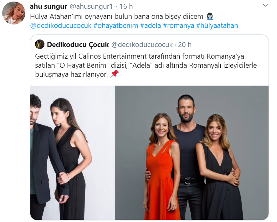„Să mi-o găsiți pe cea care joacă rolul Hülya Atakan pentru că am să-i spun ceva.„