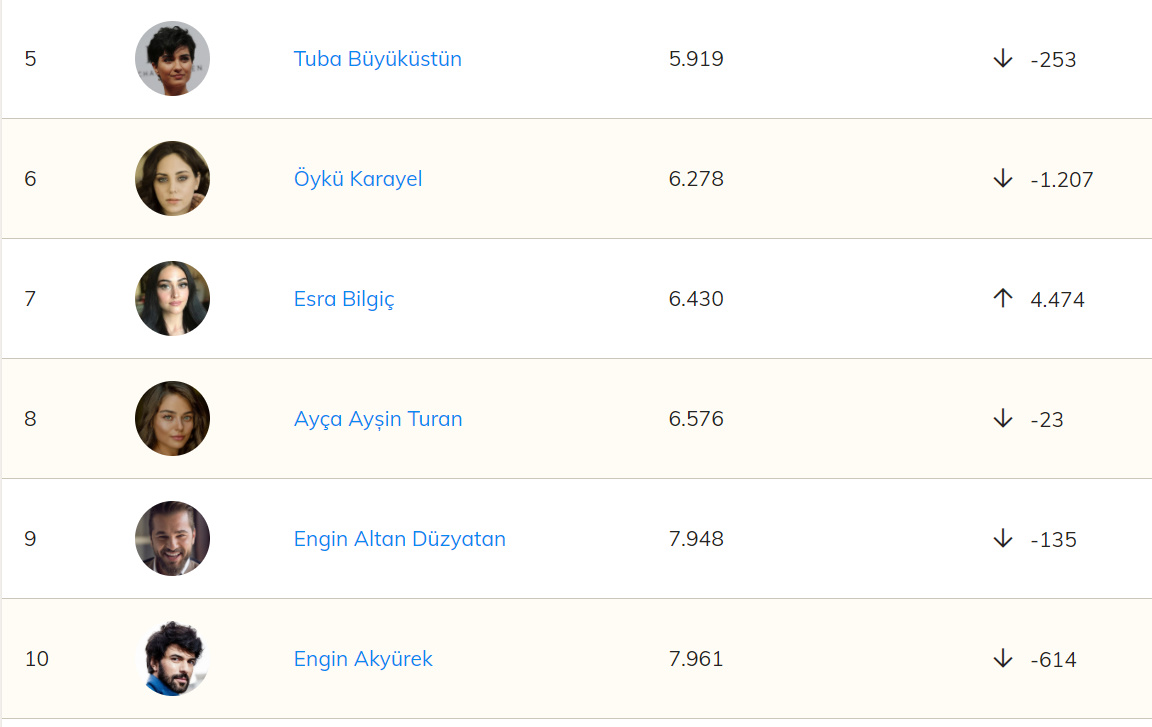 După cum știți, clasamentul este rezultatul accesărilor informațiilor actorilor favoriți.
