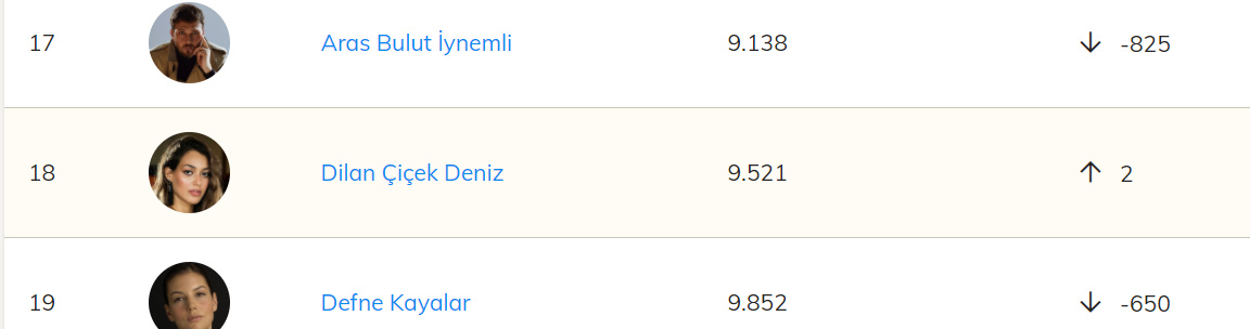 Clasamentul actorilor turci este condus de FUNDA ERYİĞİT care reușește să se situeze pe locul 4.620 mondial.