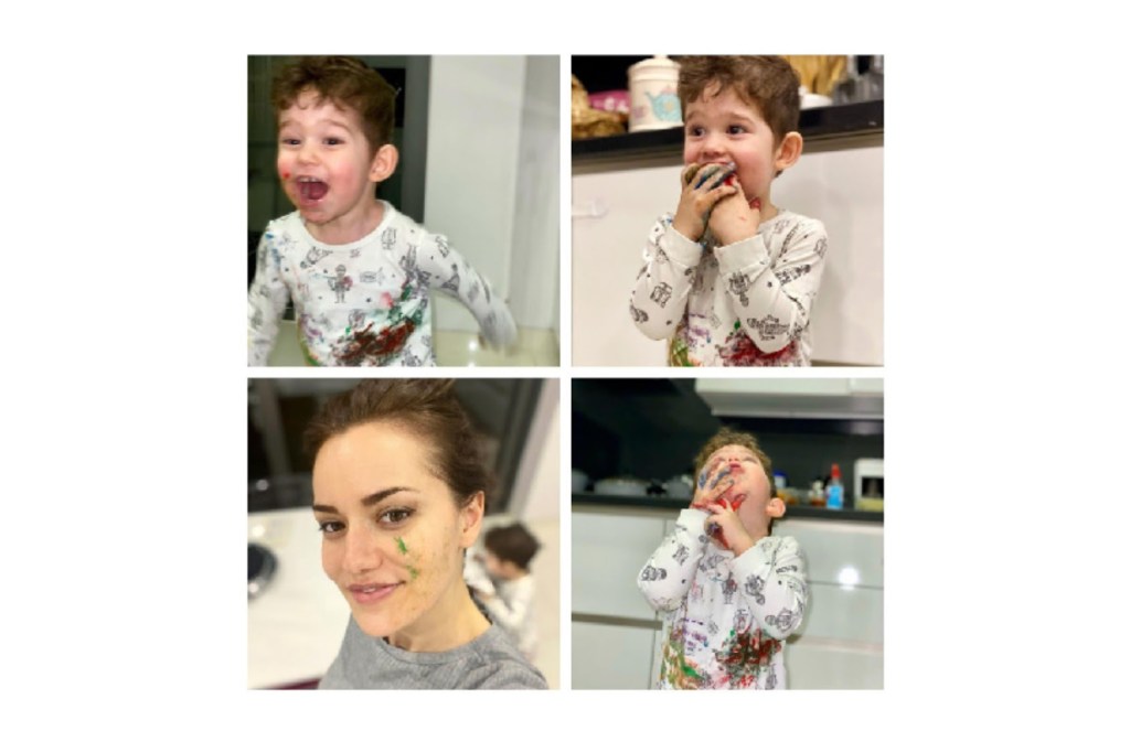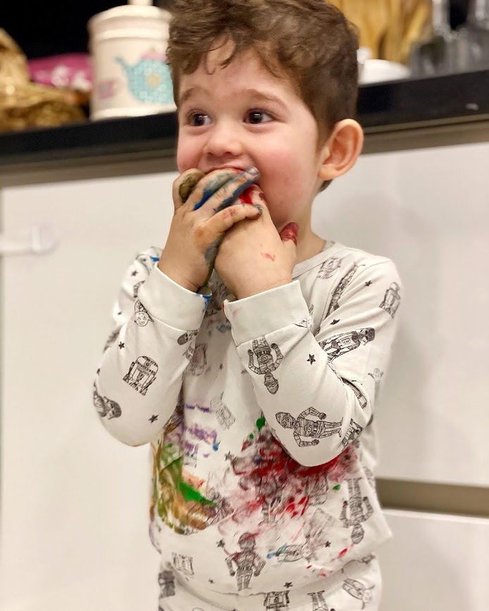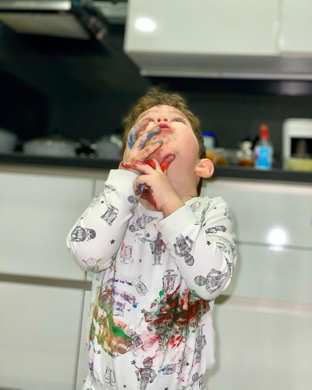 „Micul meu pictor la lucru” este comentariul care însoțește savuroasele fotografii.
