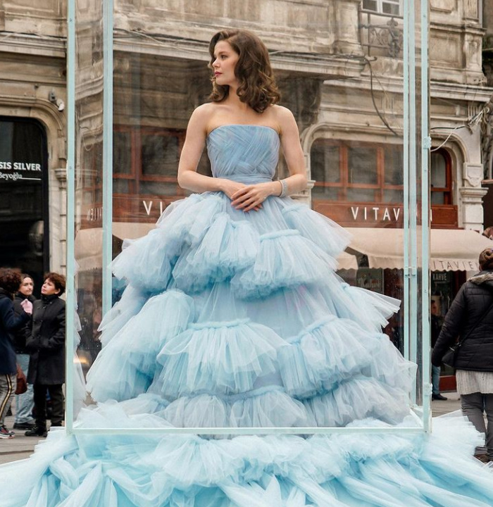 Am recunoscut rochia din promo. A fost purtată de Dilan Çiçek Deniz la Cannes pe vremea când actrița era imaginea unui brand de bijuterii.
