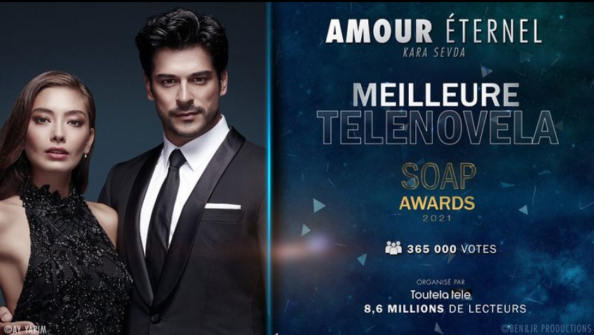 „Kara Sevda„ ( Endless Love)/Dragoste infinită), singurul serial turcesc care deține Premiul pentru Cea mai Bună Telenovelă la International Emmy Awards, reușește să obțină și trofeul Franța SOAP AWARDS 2021 la categoria Cea mai bună telenovelă „