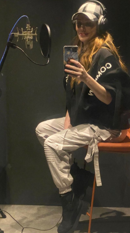 Poate aceeași melodie, alte ritmuri, alte versuri și o voce nouă: Elçin Sangu (dacă tot a postat fotografii din studioul de înregistrări).