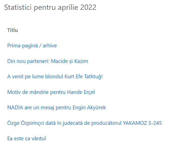 Statisticile îmi spun că cele mai citite articole au fost: