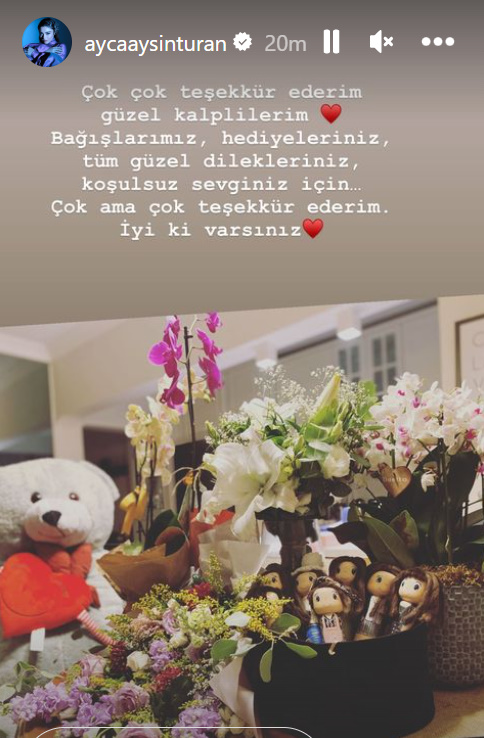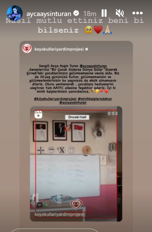 „Cei care vă iubesc au spus „Când un copil zâmbește, zâmbește o lume„ și au fost prilej de zâmbete pentru copiii noștri. Vă felicităm cu prilejul împlinirii celor 30 de ani și vă urăm ca zâmbetul și cei ce vă fac să zâmbiți să nu vă lipsească. Mulțumim Fan Club Ayça Ayşin Turan pentru că ne-ați înnoit școala și ați trimis daruri copiilor noștri. Ce bine că sunteți alături de micuțele noastre inimi!„ au scris aceștia la postarea de pe Instagram.