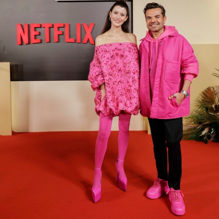 La evenimentul NETFLIX, Beren Saat a purtat o ținută Valentino Pink PP Collection.