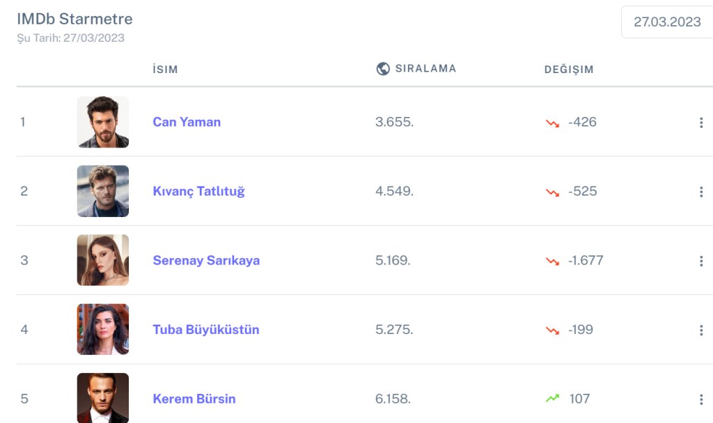 Turcia are săptămâna aceasta 12 actori în TOP 10.000 din unsprezece milioane de nume din prestigioasa bază de date IMDb. Sursa: SOCIPOL