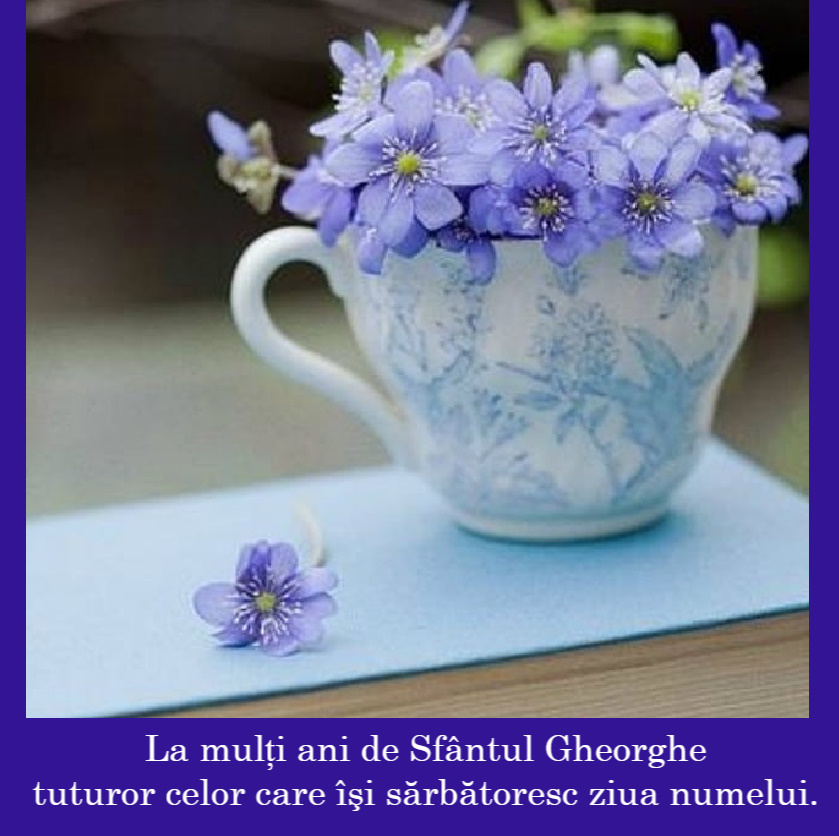 Peste un milion de români sărbătoresc azi ziua numelui, Georgiana, Georgeta, Gheorghe, George, Gina, Geta, Gelu și alte derivate ale numelui Sfântului Mare Mucenic Gheorghe care s-a născut din părinţi creştini în Capadocia, în timpul împăratului Diocleţian, în secolul al IV-lea.