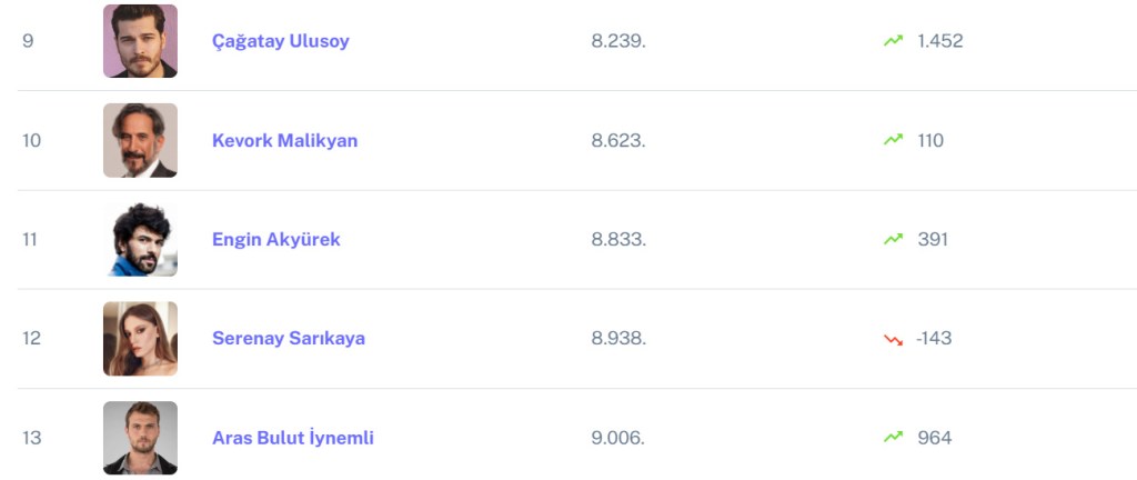 Can Yaman completează podiumul ajungând pe locul 1.698 mondial.