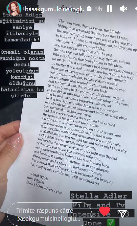 Başak Gümülcinelioğlu este una dintre cele 12 persoane admise la cursurile de actorie intensive de la Hollywood Stella Adler Acting Studio.