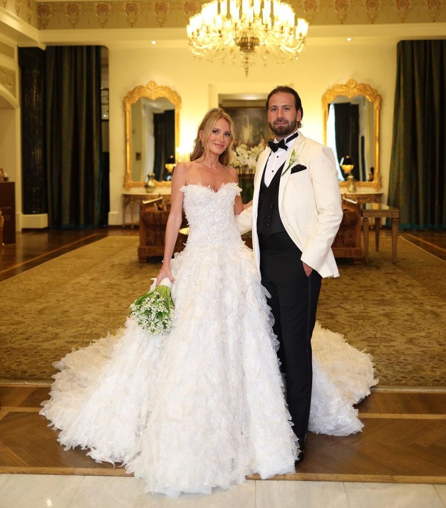 Hande Erçel şi Hakan Sabancı se află în această seară la Çırağan Palace unde are loc nunta fiicei celebrei creatoare de modă Nedret Taciroğlu.