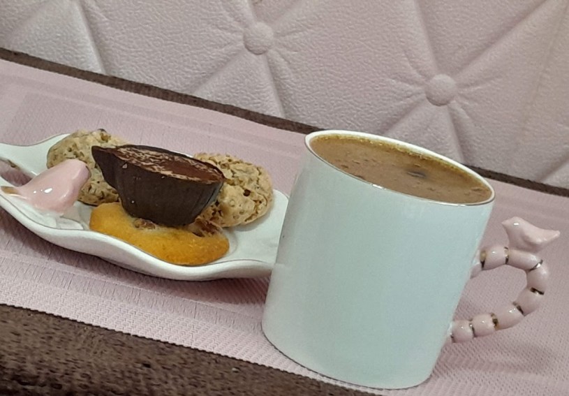 L-am ascultat la o cafea și un desert de ciocolată ce a luat forma ceștii de cafea.