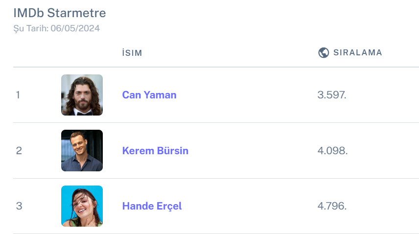 Turcia are săptămâna aceasta 14 actori în TOP 10.000 din unsprezece milioane de nume din prestigioasa bază de date IMDb. Sursa: SOCIPOL