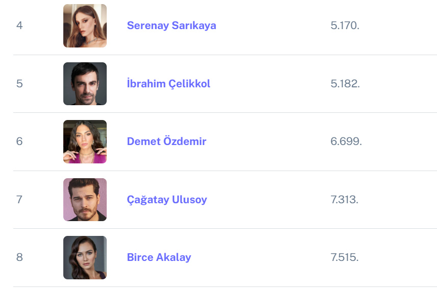 Podiumul este completat de Kerem Bürsin şi Hande Erçel.