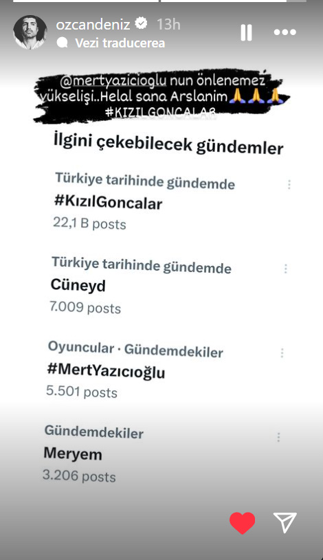 Özcan Deniz a scris: „Ascensiunea de neoprit a lui Mert Yazıcıoğlu. Bravo ție, Leul meu.”