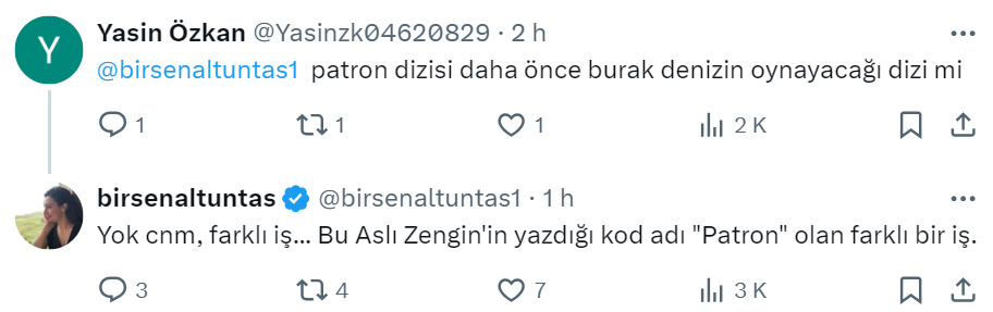 Jurnalista a răspuns că este vorba despre un alt proiect cu un scenariu scris de Aslı Zengin şi care are titlul provizoriu „Patron„.