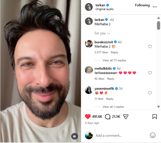 „Salut, Istanbul! Gata cu dorul! Ne revedem curând! (râde) Râd și eu la aceste filmulețe ale mele uneori… Lăsând gluma de-o parte, mi-e foarte dor și mie și am mari emoții cu privire la aceste concerte. Abia aștept să vină acele zile. Să ne vedem cu bine. Vă pup mult pe toți!„ a scris vedeta pe Instagram și i s-a răspuns imediat la salut. Între cei care au răspuns la salut, a fost actorul Burak Özçivit!
