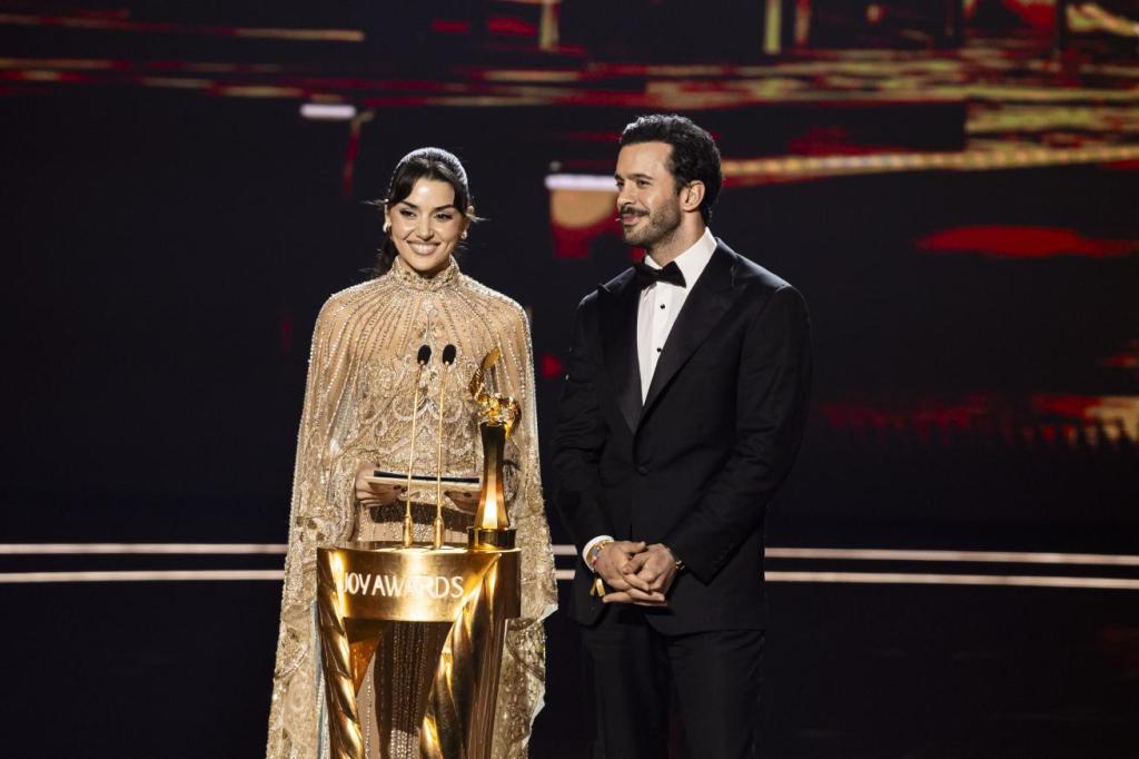 După ce au fost parteneri în trei proiecte (filmul „Rüzgara Bırak”, serialul „Aşkı Hatırla” și recentul „Aşk ve Gözyaşı”), s-au întâlnit din nou, dar pe fabuloasa scenă de la Joy Awards… Chimia lor a fost electrizantă și virală instant! Hande Erçel a fost wow în rochia sparkling Elie Saab (cu bijuterii Pomellato), prezentând alături de Barış Arduç premiul Best Arab Actress – și a vorbit arabă, câștigând inimi!