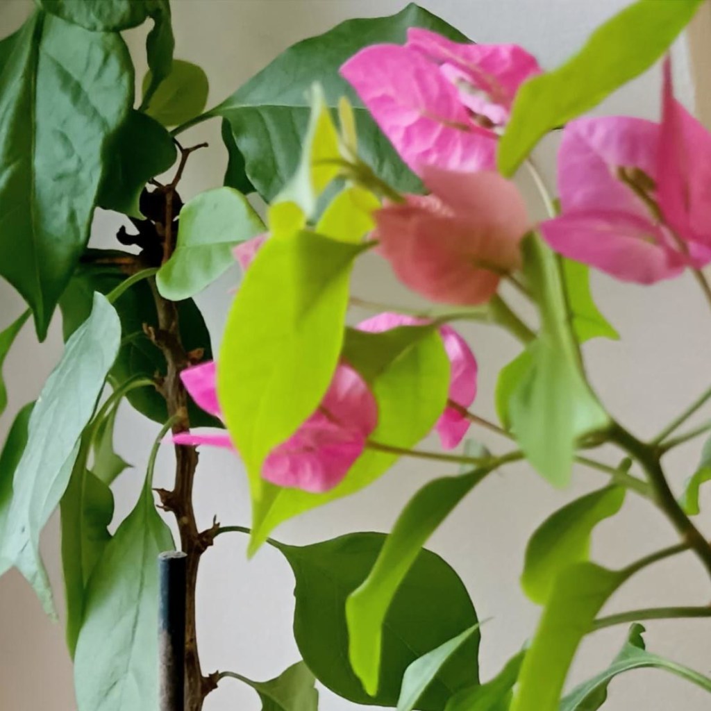 Bougainvillea de la fereastra mea, acum, în februarie.