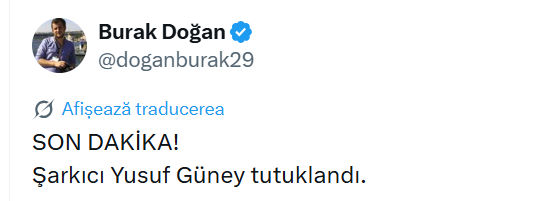 Acesta a fost reținut în urmă cu patru ore, iar acum, conform jurnalistului Burak Doğan, a fost arestat.